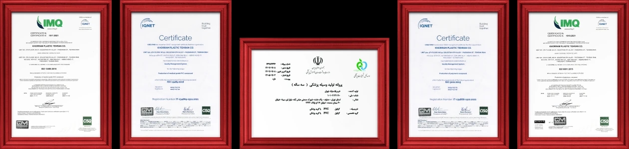 دارای مجوز ایزو ۱۳۴۸۵ و مجوز رسمی از تجهیزات پزشکی ایران برای تولید گرانول PVC پزشکی